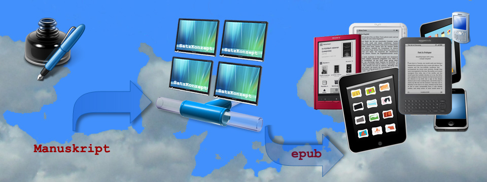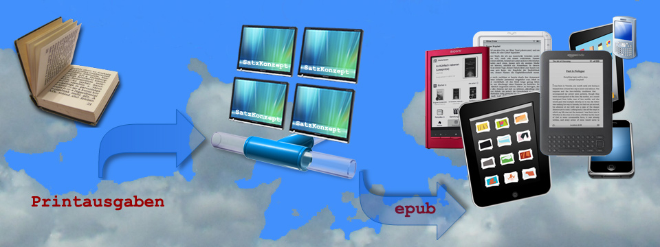 SatzKonzept hat in den letzten Jahren große Erfahrung in der ePub-Produktion für namhafte Verlage gesammelt. Wir haben ein eigenes System entwickelt und in das bestehende Satzsystem implementiert. Das verschafft eine hohe Flexibilität bei ePub-Konvertierung, schnelle Anpassung an die Kundenanforderung und Unabhängigkeit von fertigen Softwarelösungen. Dadurch sind unsere E-Books hochkompatibel mit vielen Soft- und Hardware-Readern (Lesegeräten).